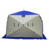 Также палатка оснащена двумя внутренними юбками с системой крепления пола, которая полностью исключает проникновение холодного воздуха внутрь палатки, что очень важно для рыбалки при сильном ветре и низкой температуре.